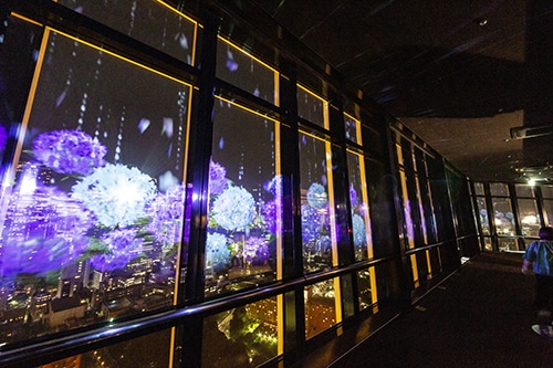 The projections showcase stories of winter butterflies that dance across the night sky and freeze the city, creating a magical visual spectacle set against Tokyo’s skyline. Visitors can enjoy the displays while exploring the Main Deck at 150 meters above the city, offering breathtaking views during the early evening hours.