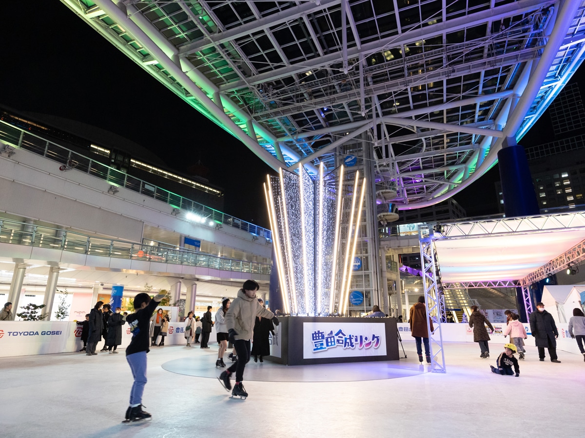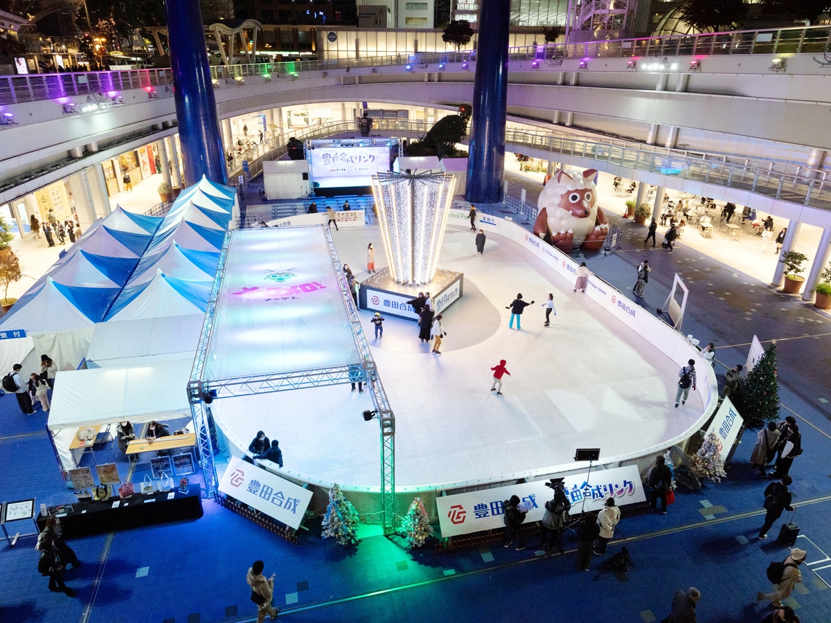 The Toyoda Gosei Rink first opened in 2018 as a collaboration between Oasis 21 and Toyoda Gosei Co., Ltd., a major Toyota Group company specializing in synthetic resins and rubber. The rink introduced Japan’s first large-scale outdoor synthetic ice surface made from a special high-molecular polyethylene material that mimics real ice glide while staying completely dry.