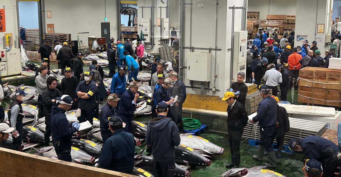 After the auction, explore the professional seafood market, where vendors also sell Japanese culinary essentials such as matcha, miso, pickles, sake, and handmade knives. Your guide will help you navigate and recommend spots to taste or purchase items.