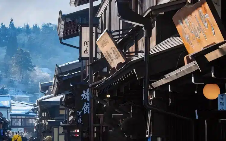 The highlight of the journey is a visit to Shirakawa-go Gassho Village, nestled among the mountains of Gifu Prefecture. Known for its iconic steep-roofed thatched houses built in the gassho-zukuri style, the village looks like a scene from a postcard. Winter brings a magical transformation — snow blankets the rooftops, and the entire village glows like a fairytale wonderland. From the Shiroyama Observation Deck, you’ll enjoy sweeping panoramic views of the snow-covered houses and surrounding mountains, an image that has captivated travelers from around the world.