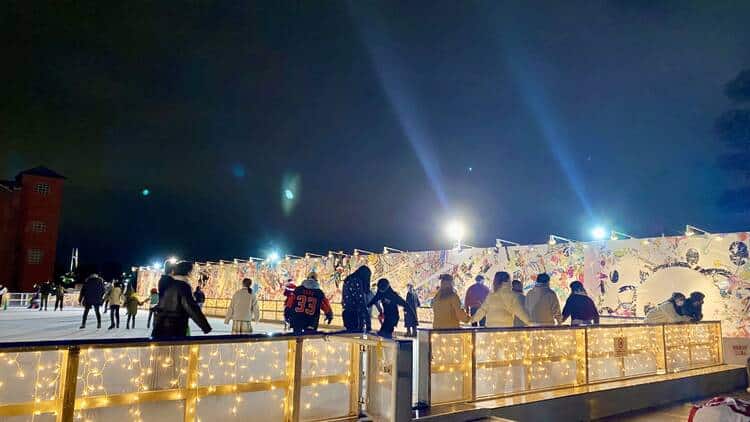 The Yokohama Art Rink 2025-2026 runs from Saturday, November 29, 2025, to Sunday, February 15, 2026, at the historic Red Brick Warehouse in Naka Ward, Yokohama. Each year, a different artist is chosen to design the ice rink, transforming it into a unique outdoor artwork. Skaters glide across a living canvas, creating an experience unlike any conventional ice rink.