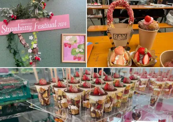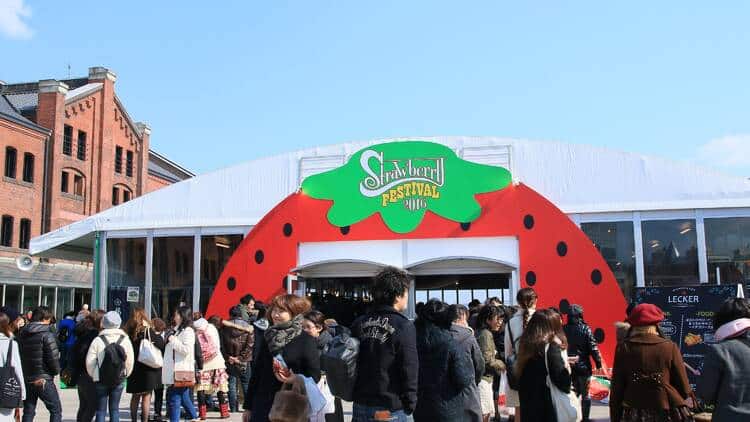 The Yokohama Strawberry Festival 2026 will be held from early February to early March at the iconic Yokohama Red Brick Warehouse, a historic venue near the waterfront. The festival features free strawberry sampling, dessert stalls, strawberry-themed merchandise, and interactive activities for kids, including a strawberry-shaped bounce house and playground (additional fee applies).