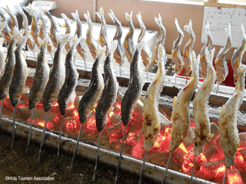 May’s rivers teem with ayu—sweetfish, grilled whole with salt over charcoal. In Gifu, near the Nagara River, stalls like Kawaramachi’s riverside spots serve it fresh—crisp skin, sweet flesh, a whiff of smoke. It’s summer’s herald, ¥800-¥1,500, paired with cold sake for Golden Week picnics.