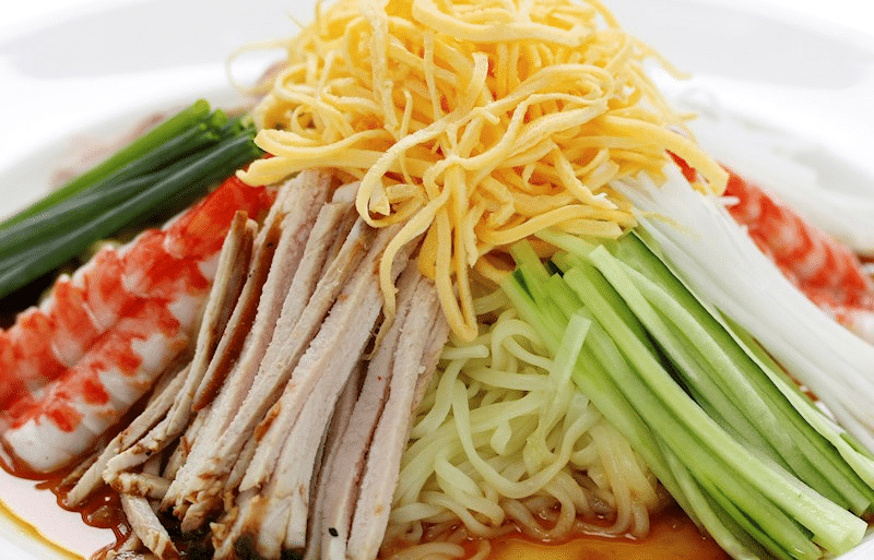 June’s heat demands hiyashi chuka—chilled ramen with cucumber, ham, egg ribbons, and a tangy soy-vinegar dressing. Tokyo’s Menya Musashi slings it in Shinjuku—cool noodles, crisp veggies, a ¥1,200 relief from humidity. It’s summer’s answer to ramen, light and zesty.