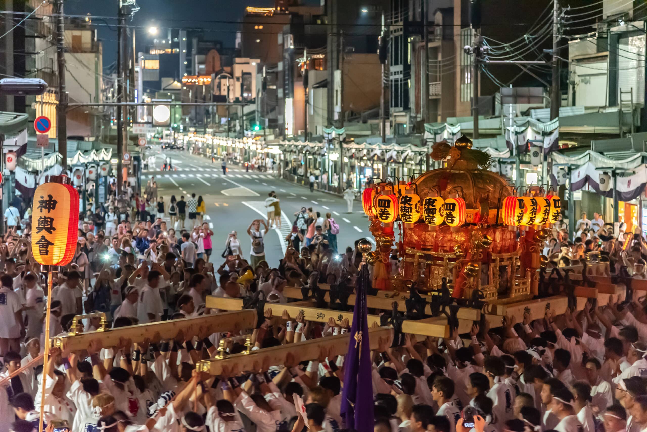 The sound of festival music fills the Kyoto air, and massive, ornate floats prepare to parade through the historic streets.